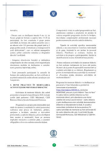 competențelor de către cursanți, a fost asigurată prin -Pentru realizarea activităților de mentorat didactic