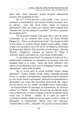 ȘCOALA ONLINE. ASPECTE. PROVOCĂRI. SOLUȚII.